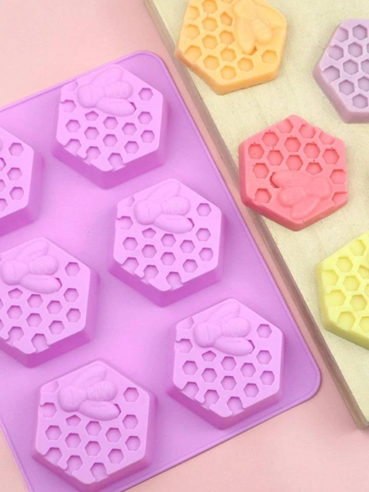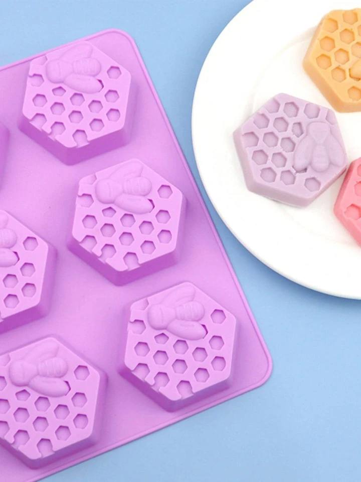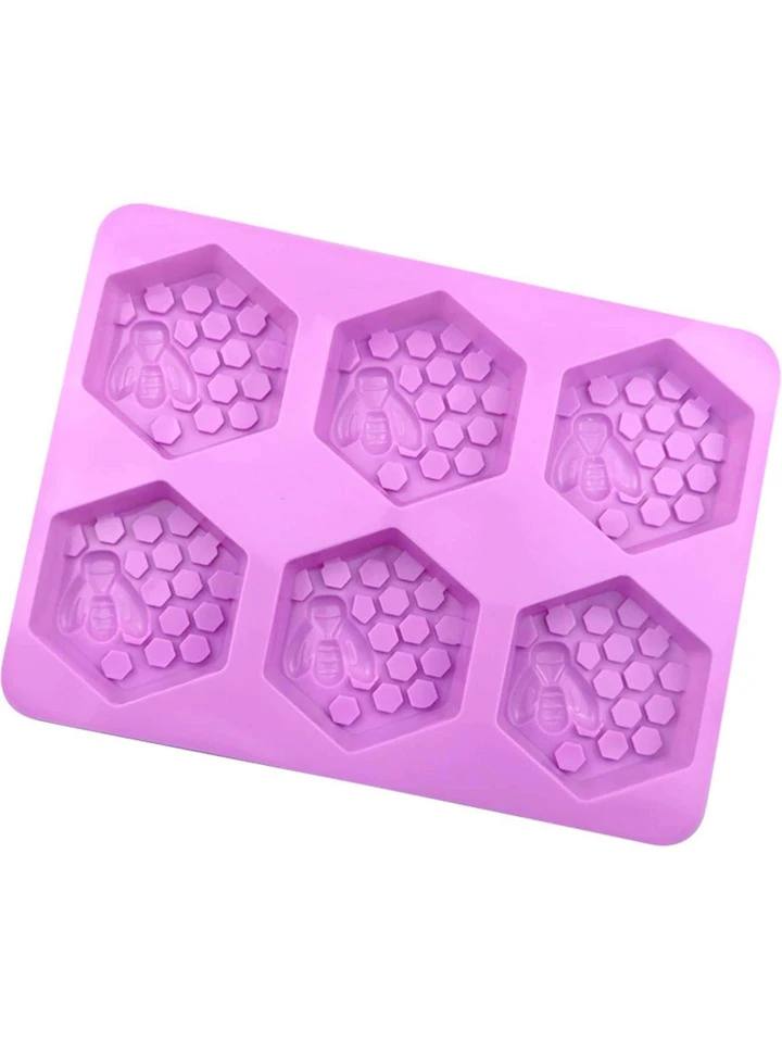 • قالب سيليكون قطعة واحدة، قالب صابون شكل خلية النحل الإبداعي باللون البنفسجي للحِرف اليدوية