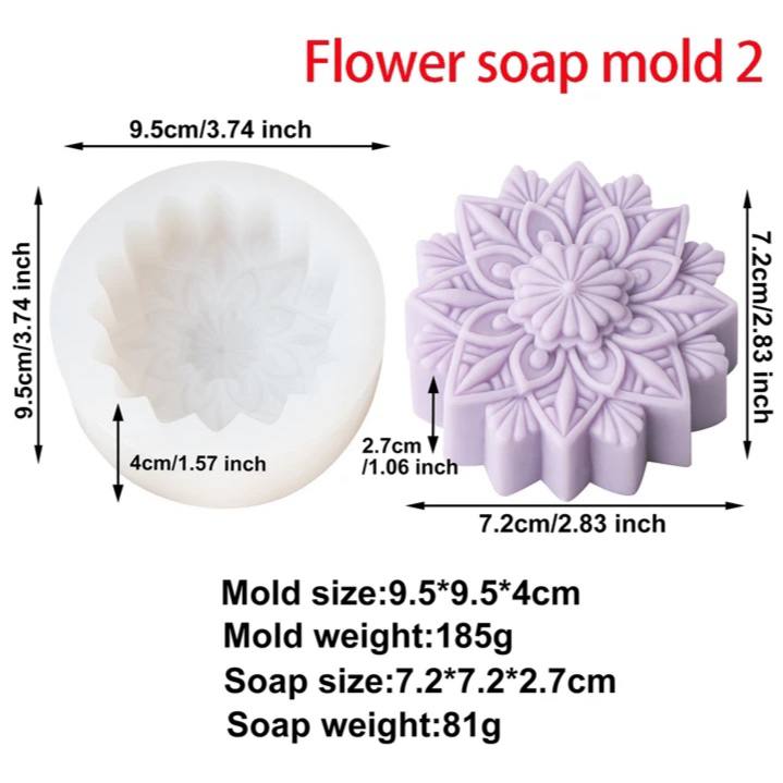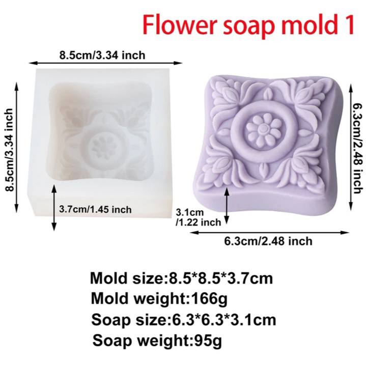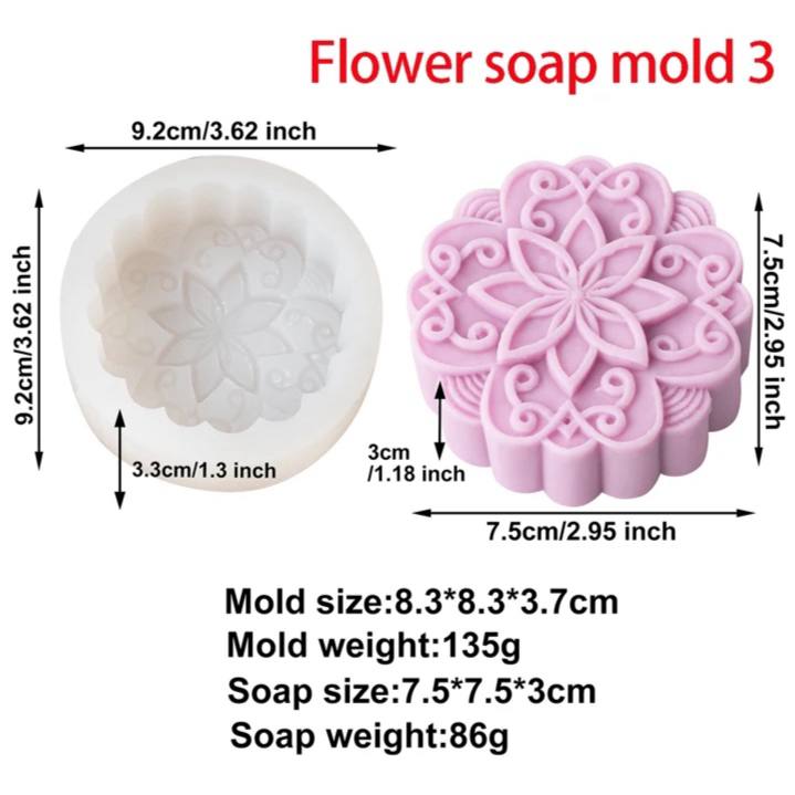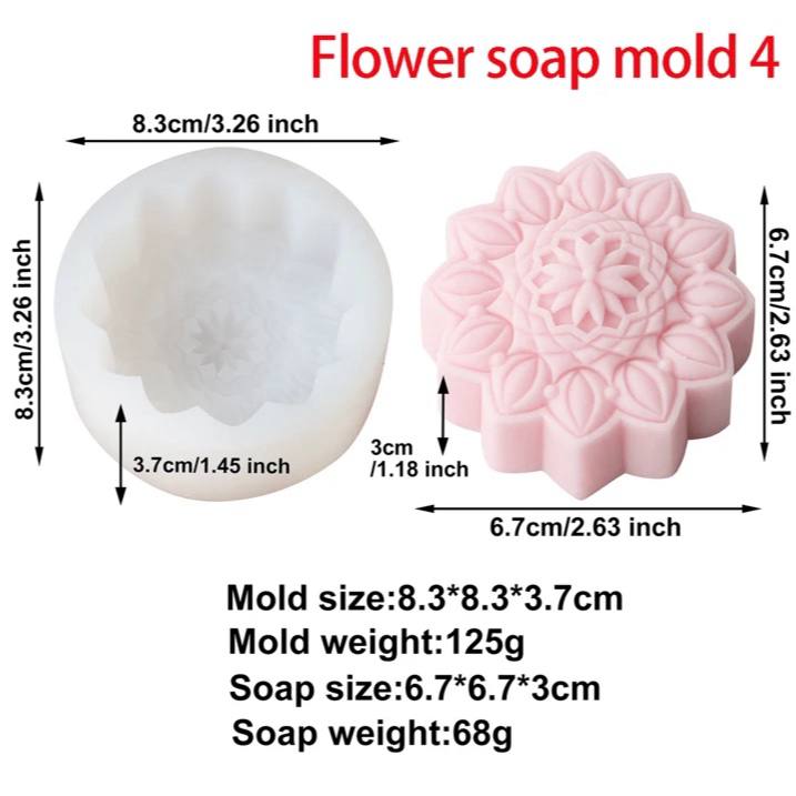 قالب سيليكون لصناعة الصابون والشمع والراتنج تصاميم زهرة وزخرفة ثلاثي الابعاد MA93
