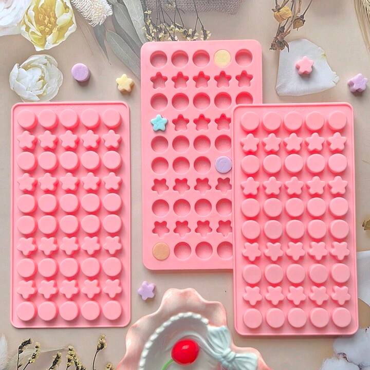 قالب سيليكون لصنع بخور مستكة وزينة الكعك 50 تجويف شكل دائرة نجمة سمايل MA93