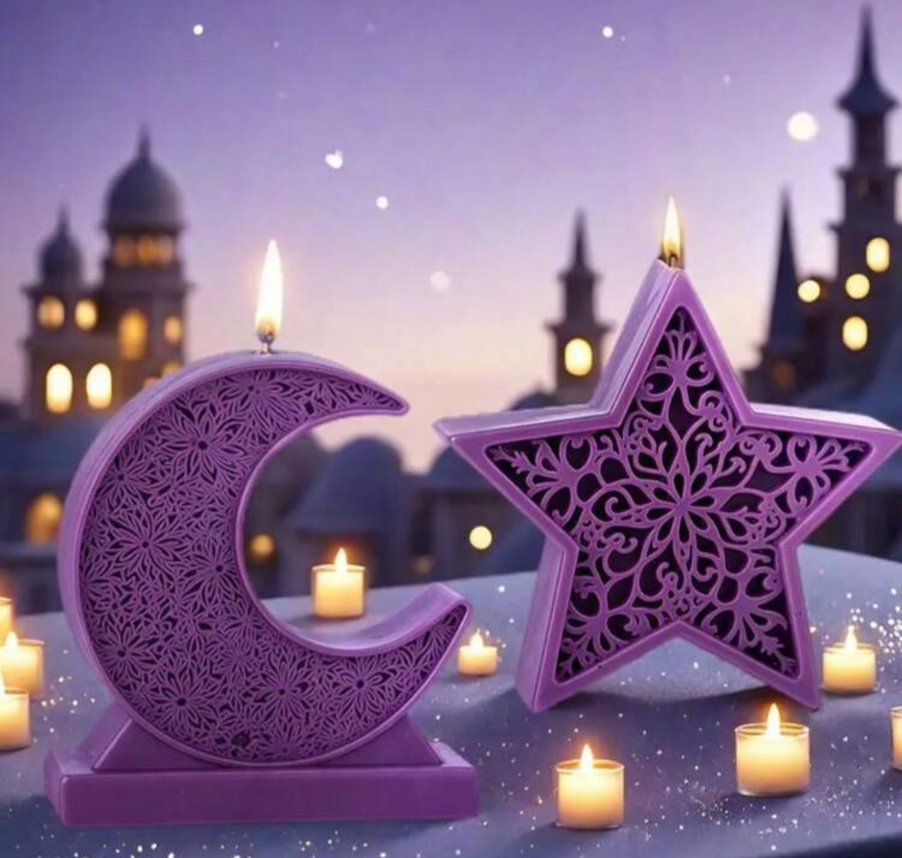 قطعتين قالب نجمة ⭐️ وهلال 🌙مناسب لصنع الشموع المعطرة وديكورات الجبس WFHM77