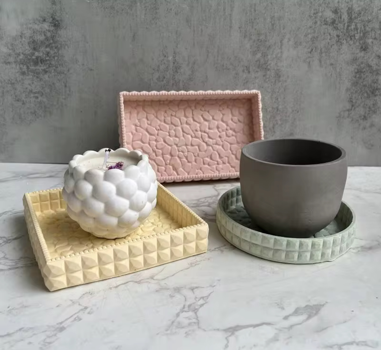 قوالب سيلكون بنمط جلد الماس ديكون صينية بشكل مربع مستطيل دائري WFHM77