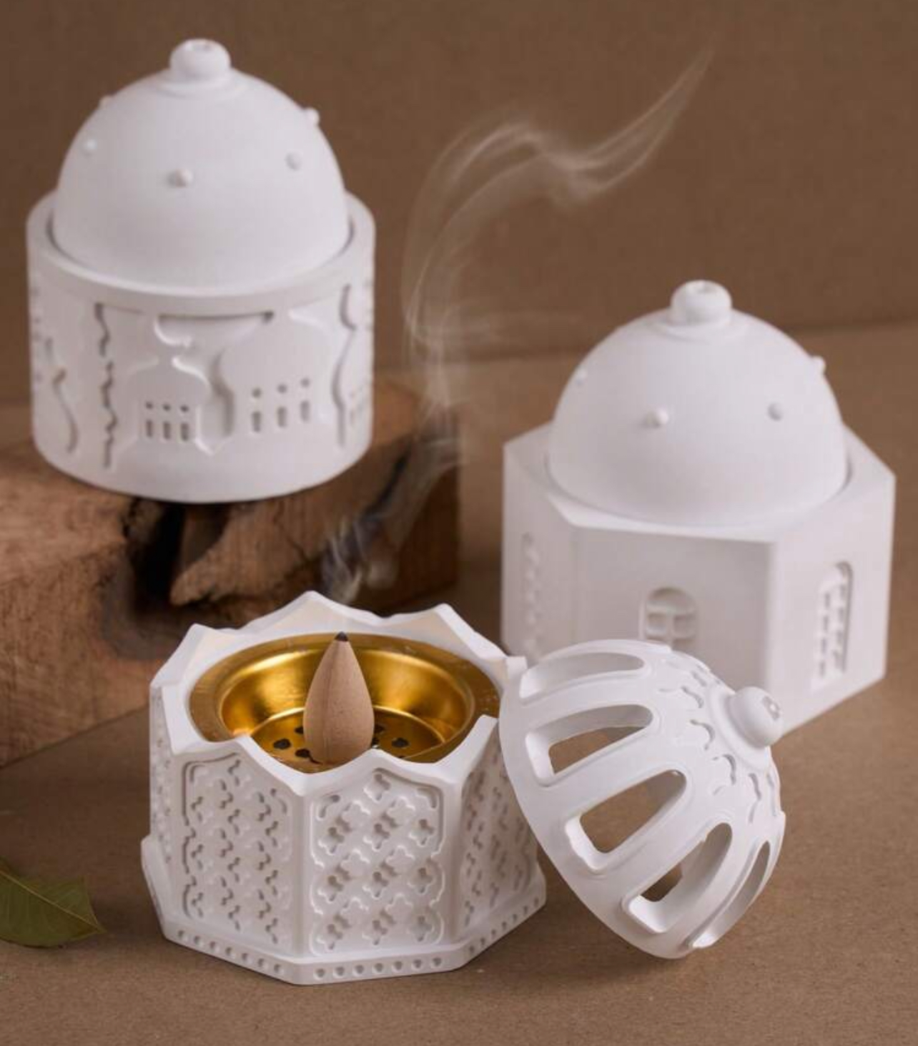 قوالب سيلكون 2*1 مبخرة +علبة بنقش اسلامي وجامع لصب الجبس WFHM77