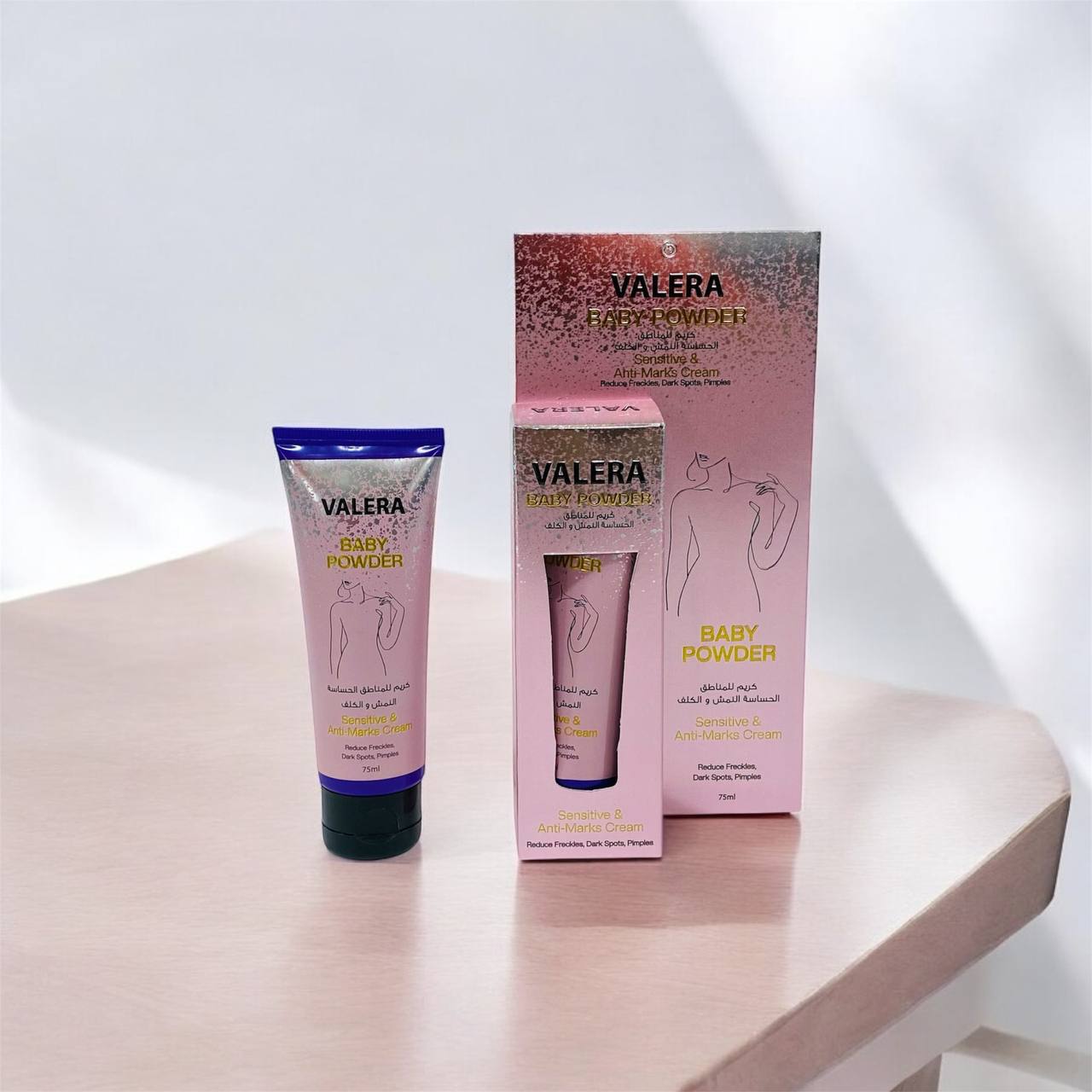 كريم تبييض المناطق الحساسة بيبي باودر النمش والكلف من فاليرا 75 مل