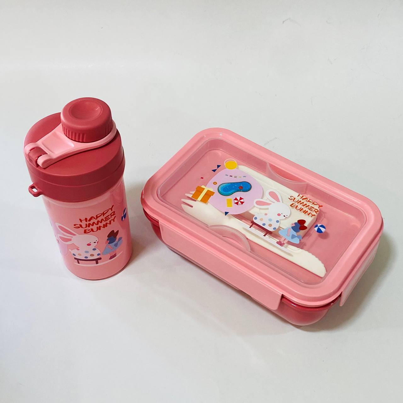 لانش بوكس مع ترمس للأطفال بلاستيك كيوت ، مناسبة للفطور ووجبات المدرسة والتنزه
