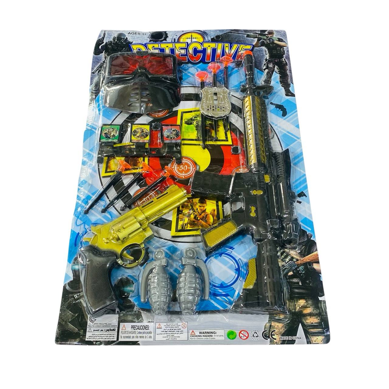 لعبة طقم شرطة مع قناع ومسدسات وسلاج سهوم لاصقة