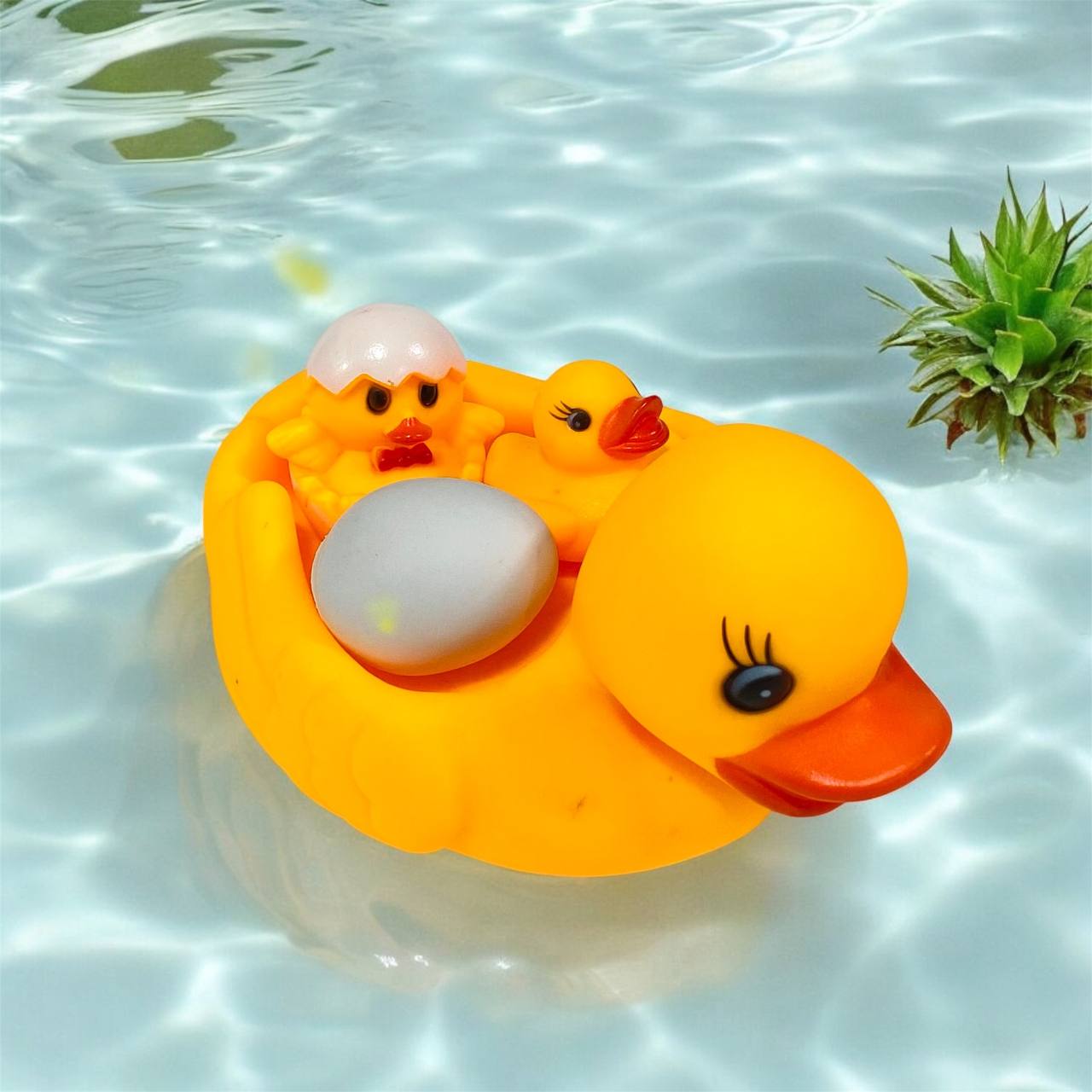 لعبة عائلة بطة حوض استحمام للأطفال مع زواية صوت 3 بطات + بيضة