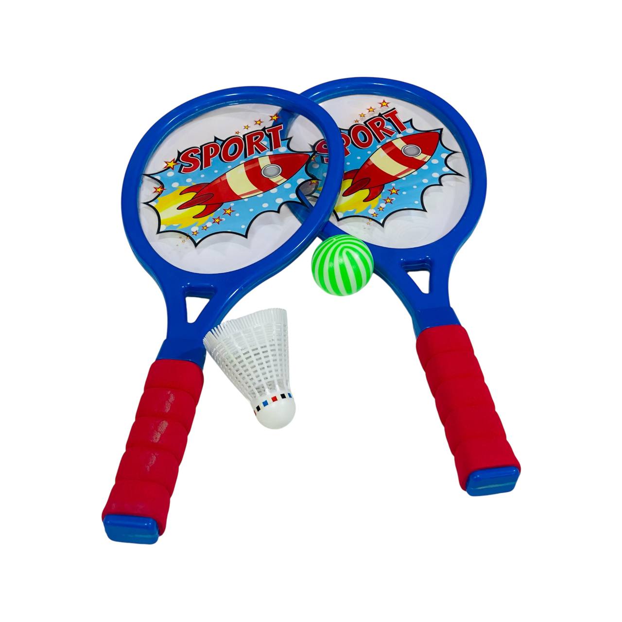 لعبة مضرب تنس 2 مضارب مع كرة بلاستيك وكرة ريشة