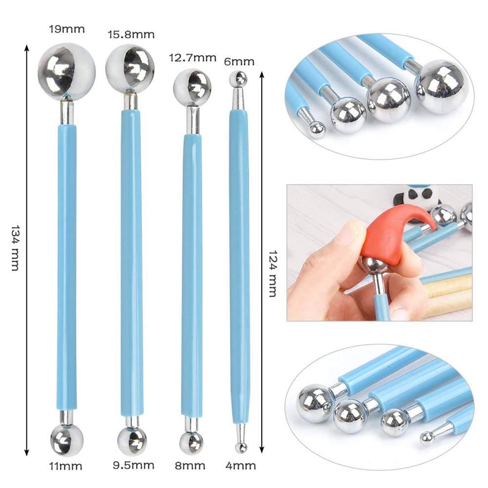 • 4 أدوات كيك مع كرات مختلفة الحجم، مثالية لتشكيل وتكشكش البتلات والأوراق المصنوعة من جامباستي أو معجون السكر أو المرزبان وما إلى ذلك.