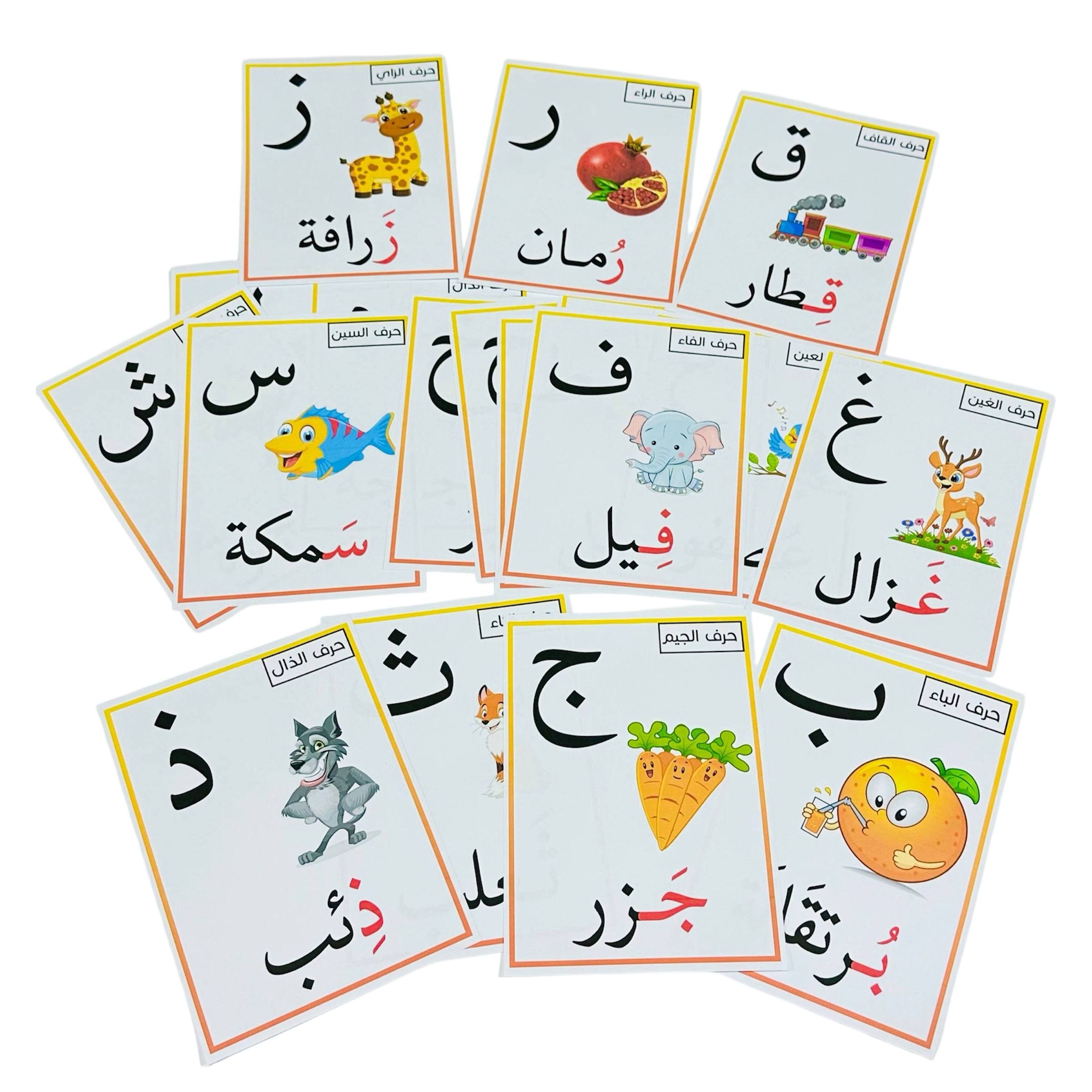 مجموعة الحروف العربية رسمة وحرف للأطفال والروضات – مقاس ورقة الكراسة A5 جميع الحروف
