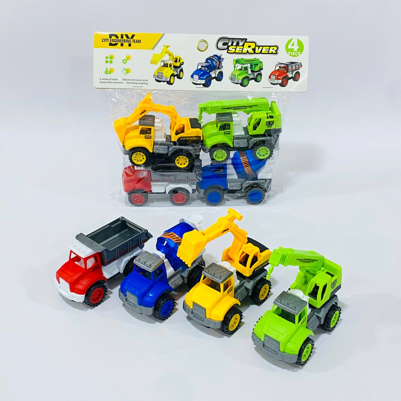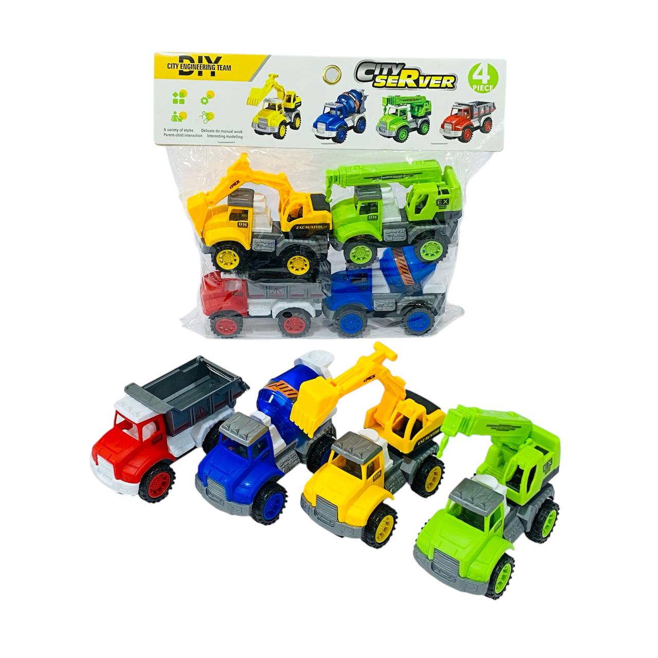 مجموعة العاب سيارات 4 شاحنات للأطفال ،طانطا وعجانة و2 رافعة
