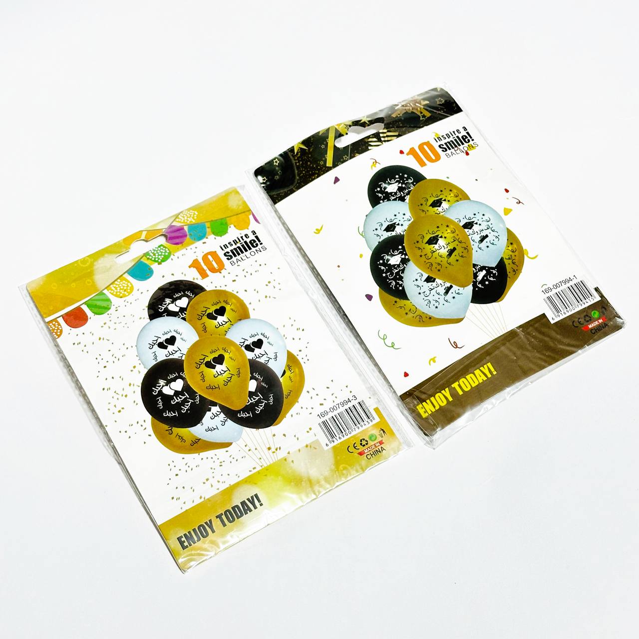 مجموعة بالونات ذهبية واسود وابيض بعبارات أحبك & ألف مبروك التخرج