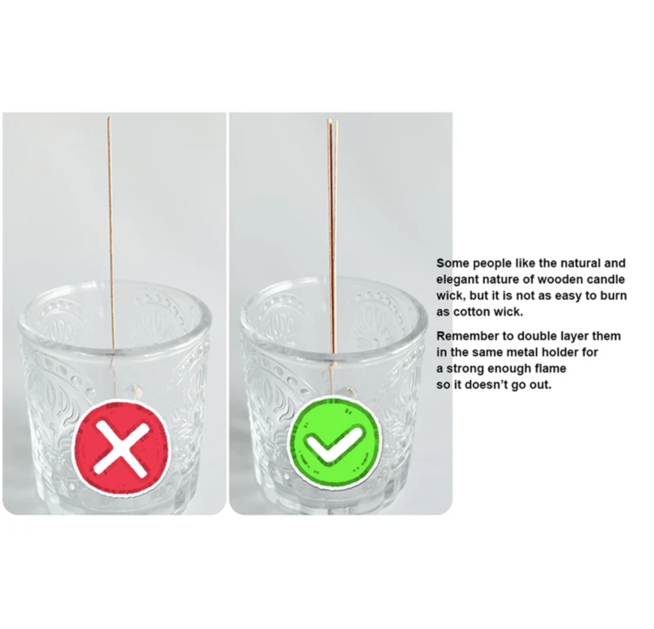 40قطع فتايل الشمع الخشبي مع 20 لاصق و20 من حوامل المعدنية لتثبيت الفتيل و20 ملصقات تحذير