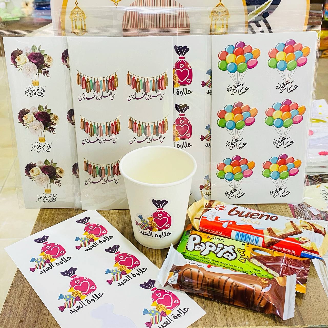 مجموعة ملصقات العيد 24 ستيكر لتزيين توزيعات العيد الاكواب والاكياس و خلوط