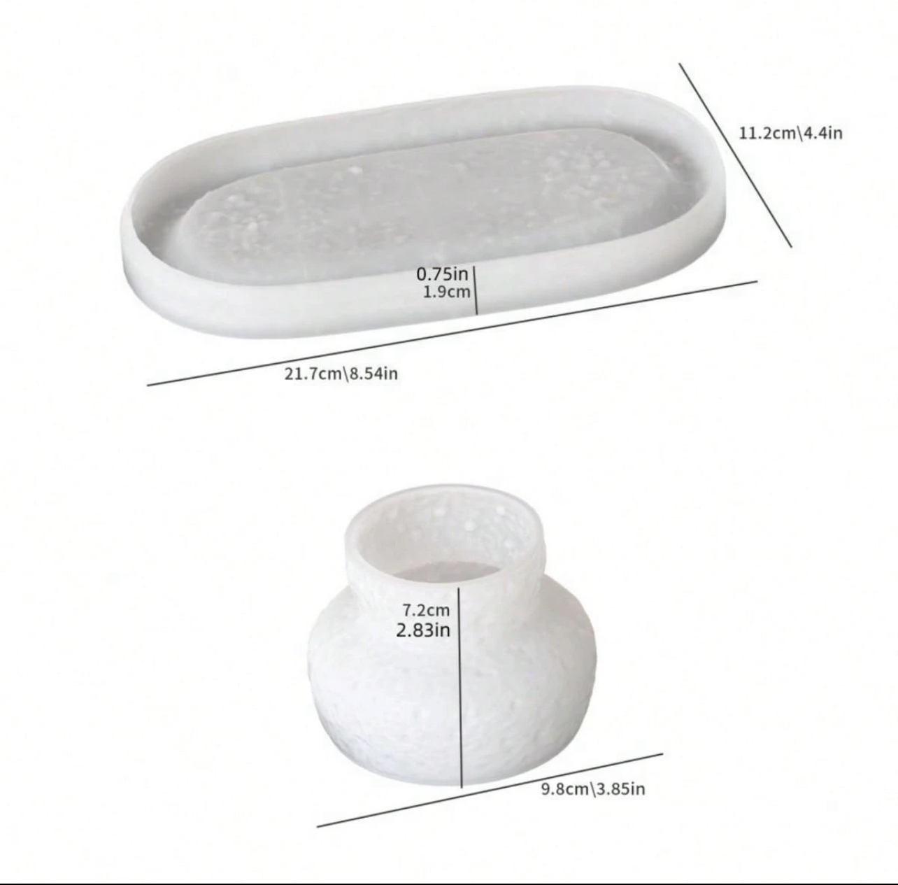 مجموعة من قالبين (2قطعة) من السيلكون صينية بيضاوية نقش حجري ، قالب لكأس شمعة،مبخرة،ملمس حجري WFHM77
