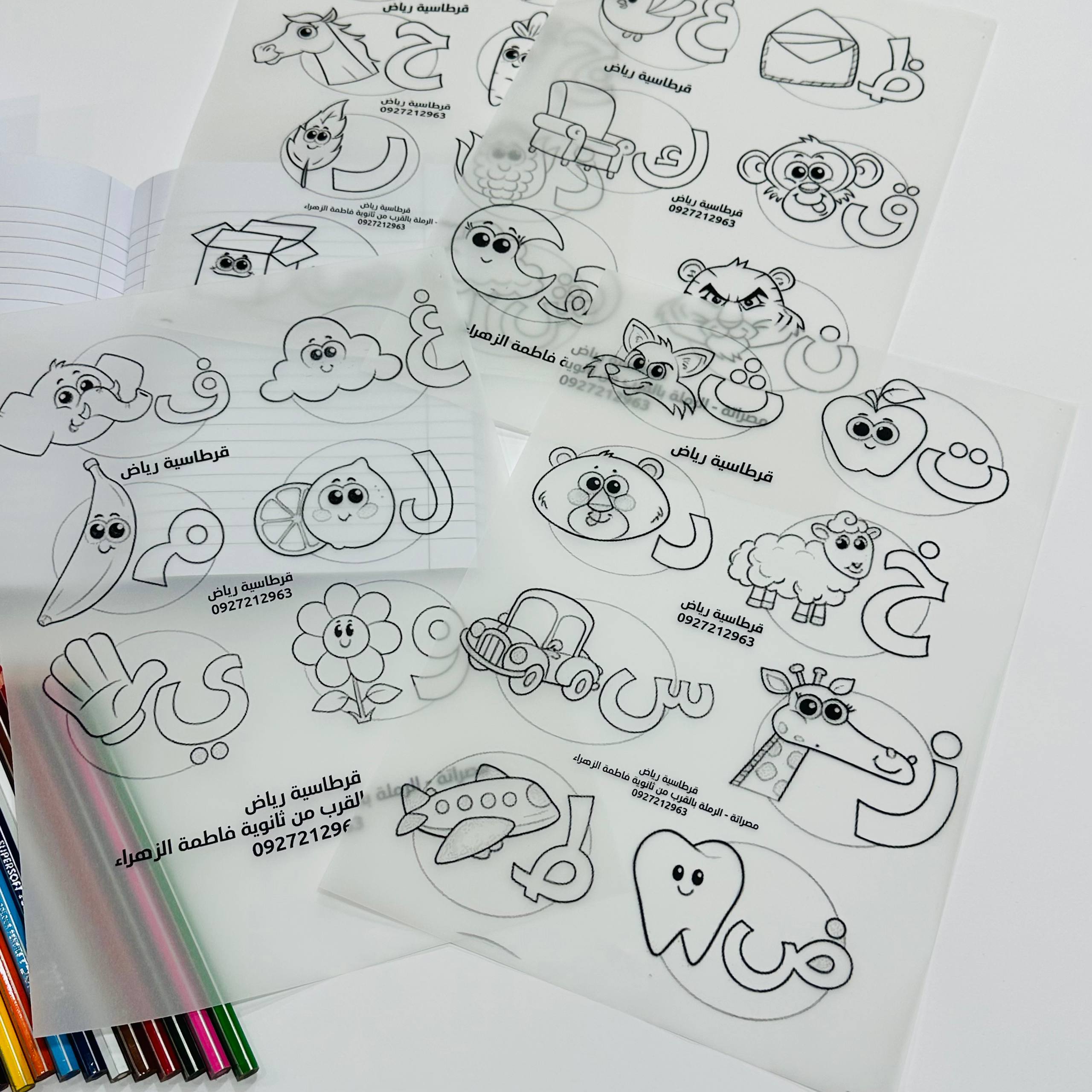 مجموعة ورق شف حرف ورسمة ، مناسبة لأطفال التأهيل والروضة ،الحروف العربية كاملة