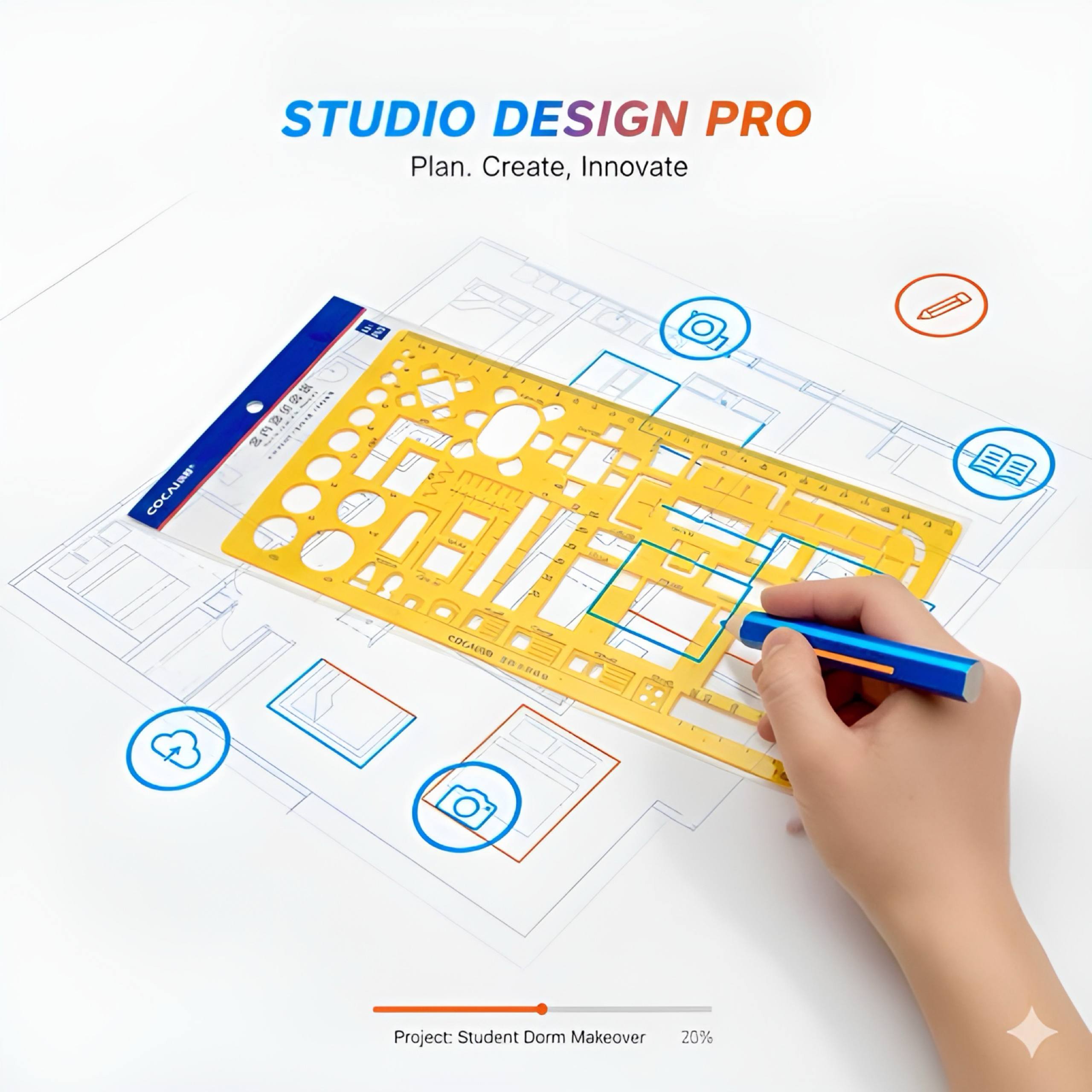 مسطرة شبلونة تصميم واشكال هندسية و ديكور داخلي أثاث لطلبة التصميم الداخلي والمعماري