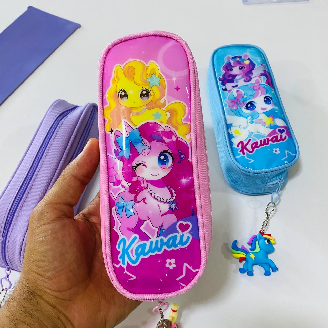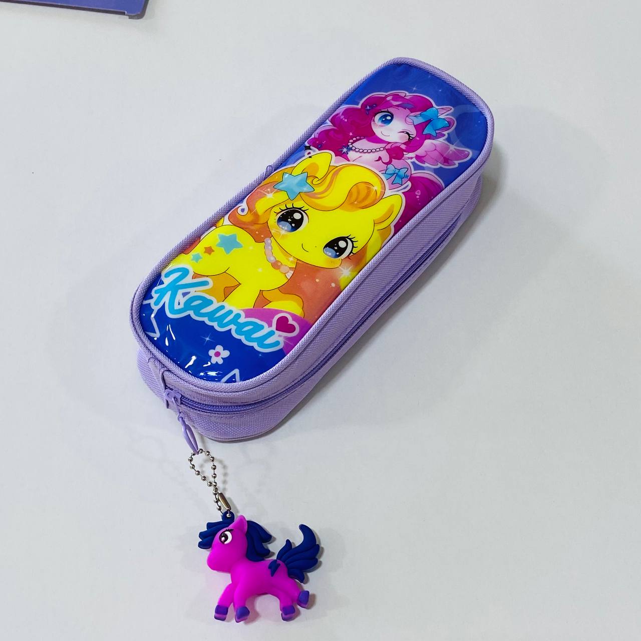مقلمة ادوات مدرسية يونيكورن مع ميدالية 2 جيب