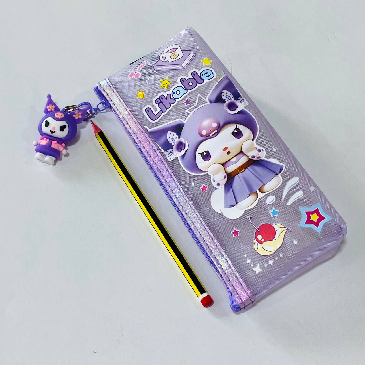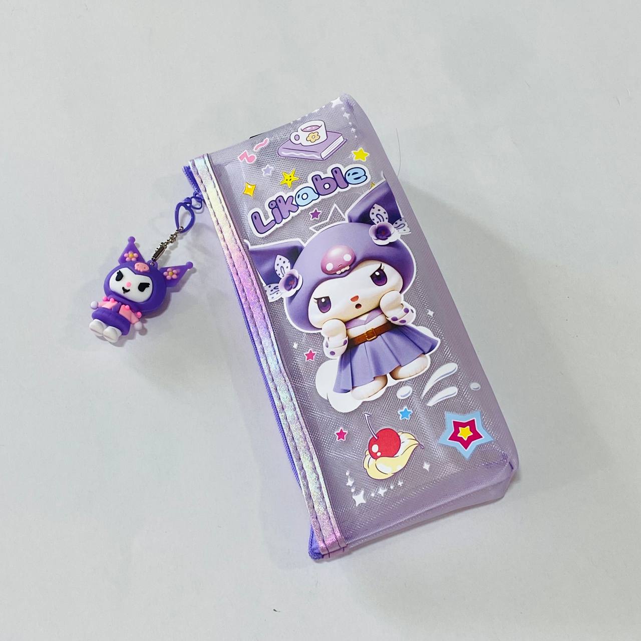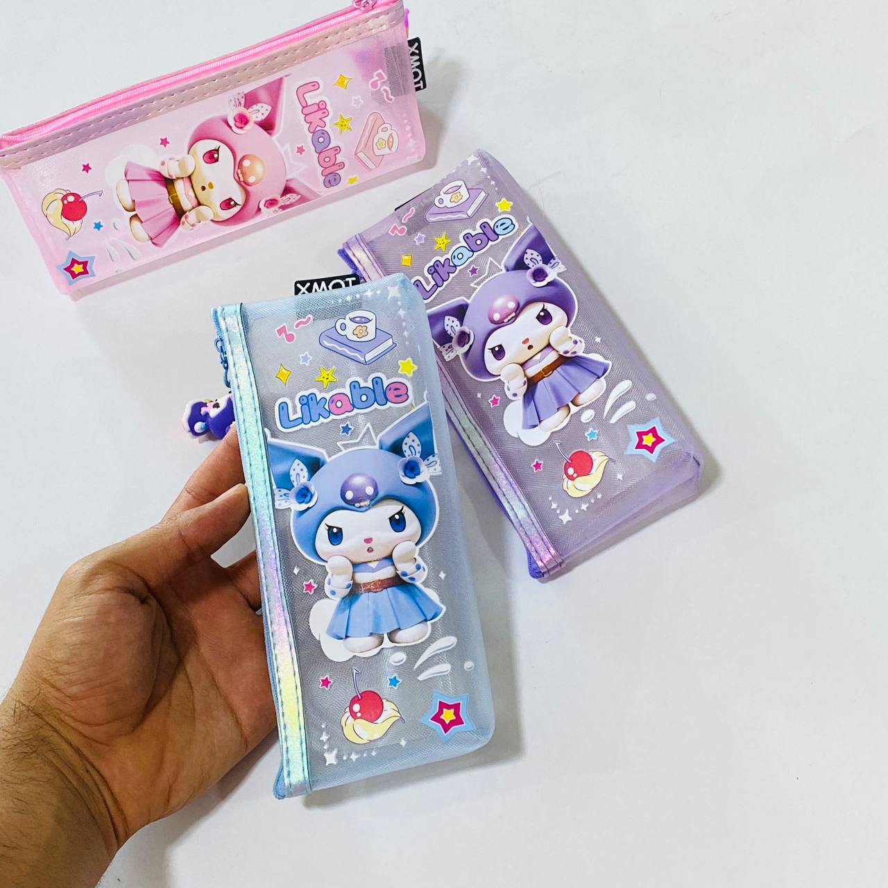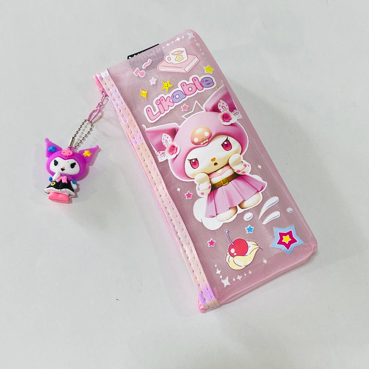 مقلمة شفافة كيرومي مع ميدالية بـ 3 ألوان تصميم جميل