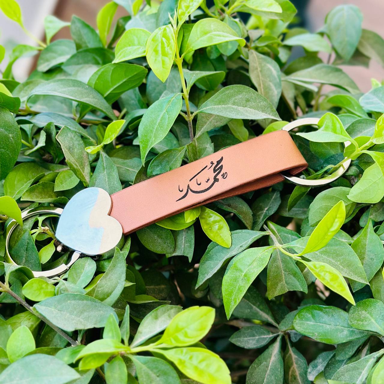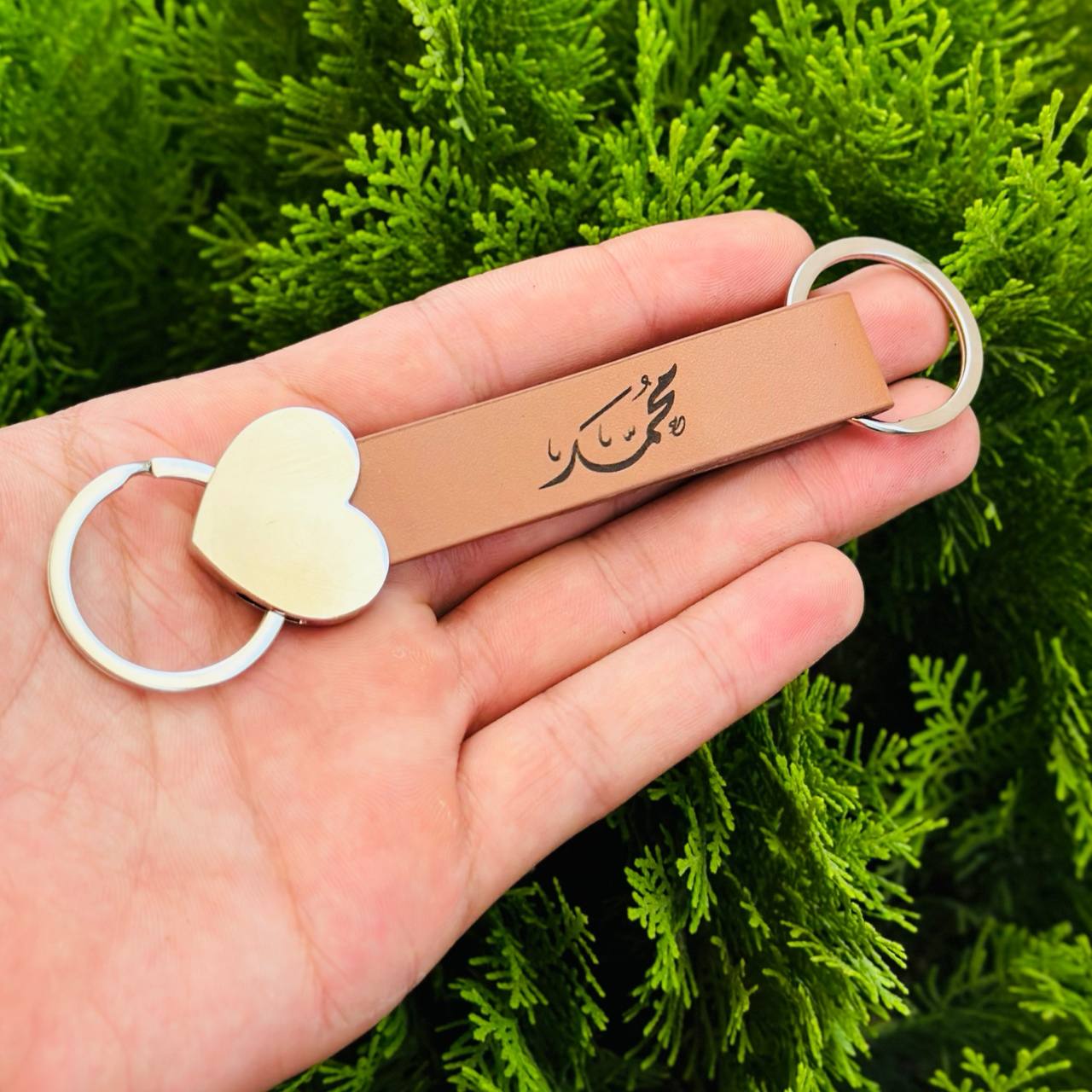 ميدالية مفاتيح جلد منقوش عليها الاسم
