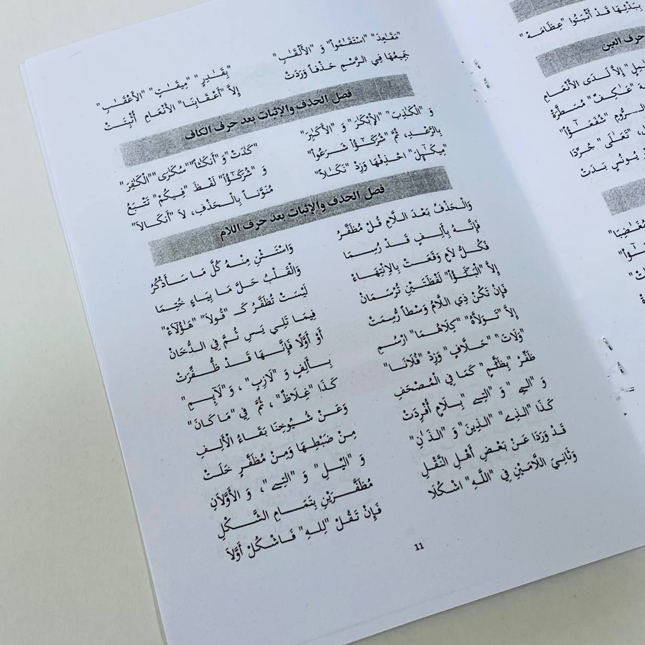 - تحفة الاطفال ، متن الجزرية ، نزهة الغلمان ، المنهج العلمي