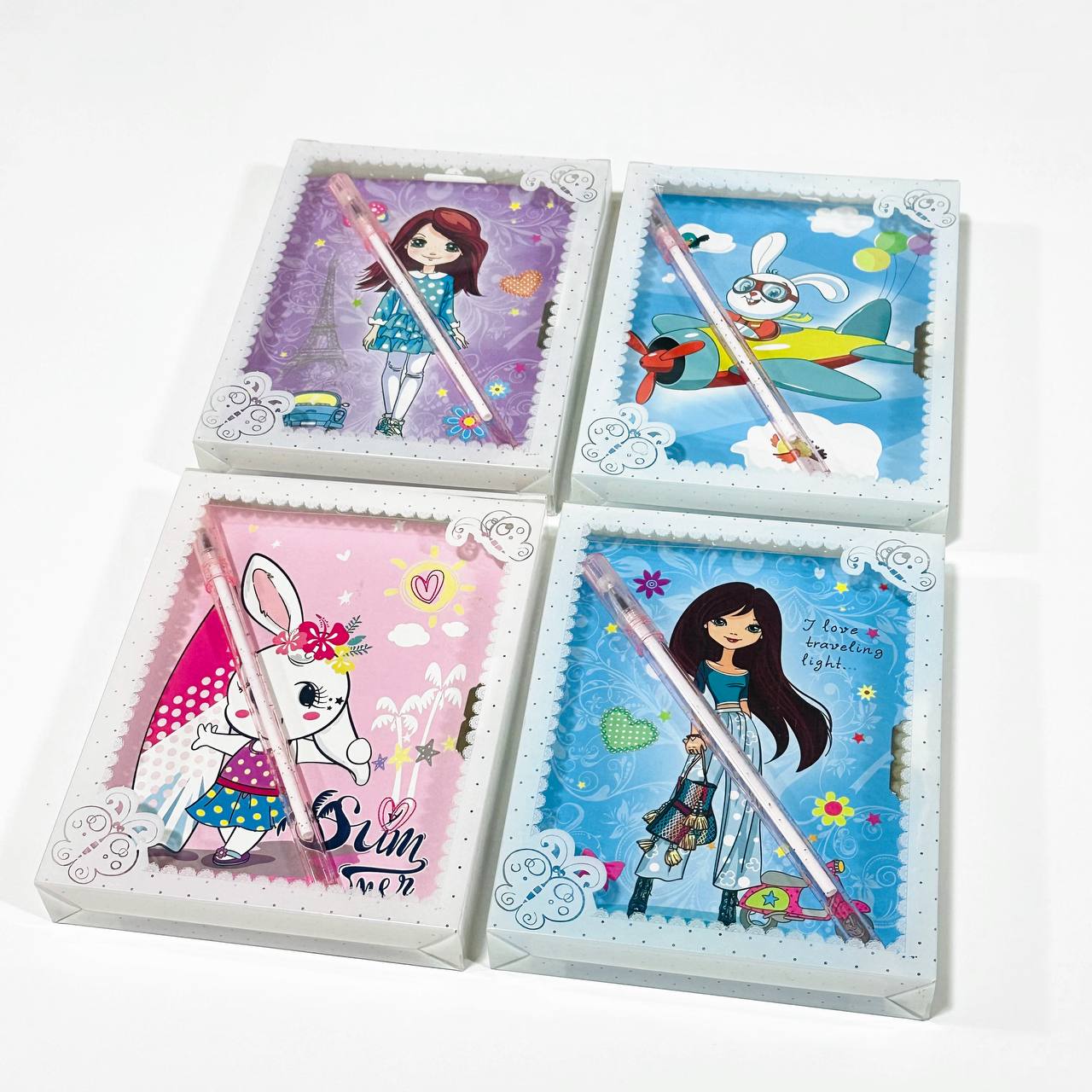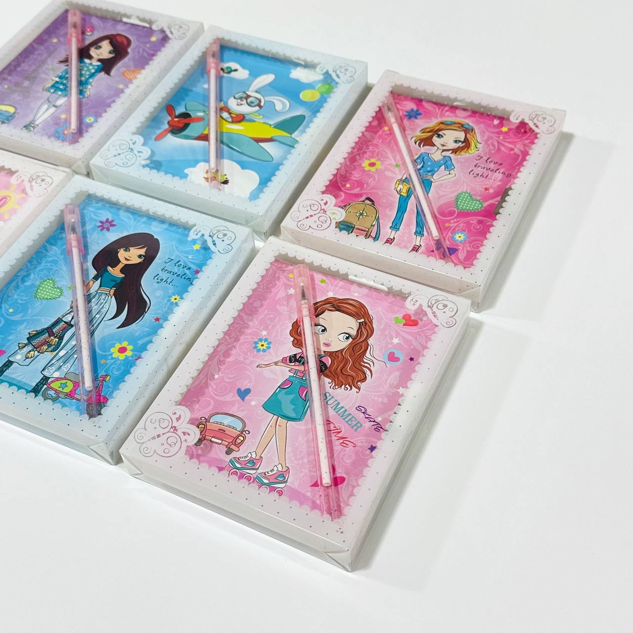 - مفكرة ملاحظات مع قلم جميل ومغلفة من الخارج في علبة بلاستيك قابلة للتغليف