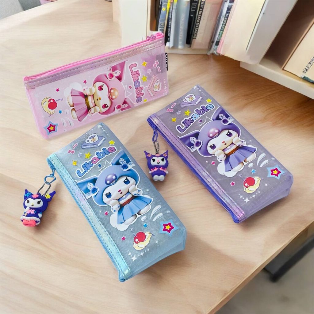 مقلمة شفافة كيرومي مع ميدالية بـ 3 ألوان تصميم جميل