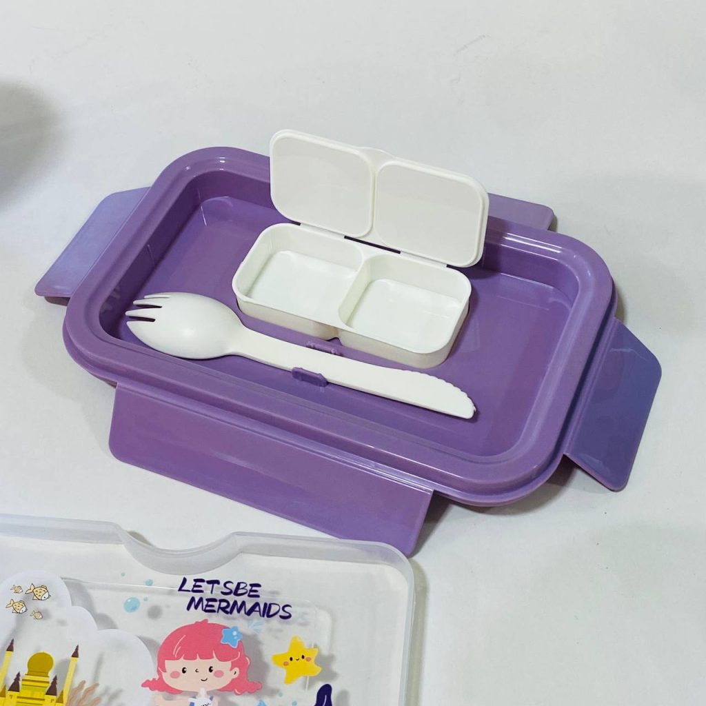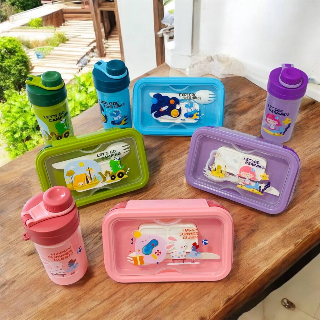 لانش بوكس مع ترمس للأطفال بلاستيك كيوت ، مناسبة للفطور ووجبات المدرسة والتنزه
