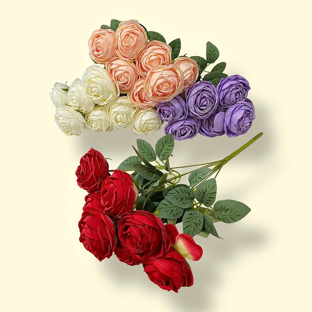 مجموعة ورد جوري صناعي شبيه الطبيعي، 7 وردات مع اوراق