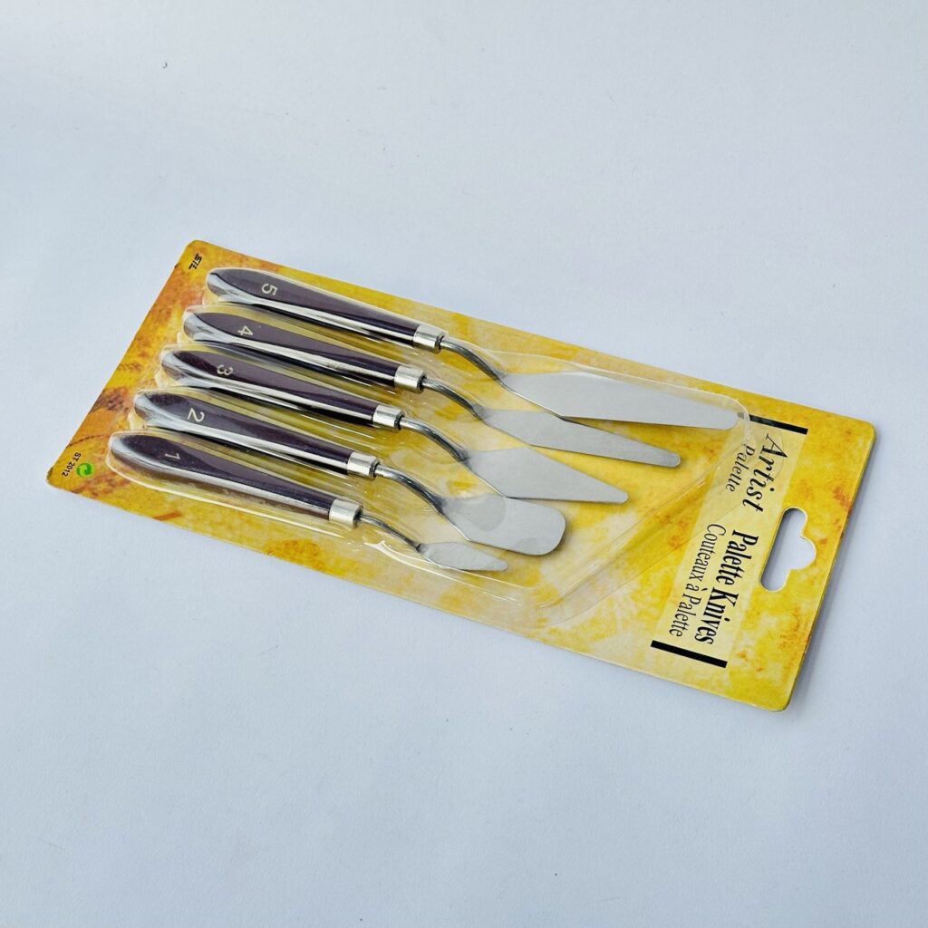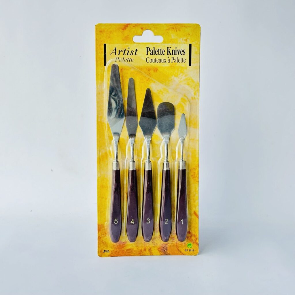 16.50 د.ل- مجموعة سكاكين الباليت للفنان تضم 5 قطع متنوعة مصنوعة من مواد عالية الجودة، مثالية لمزج وتطبيق الألوان على اللوحات بشكل احترافي.