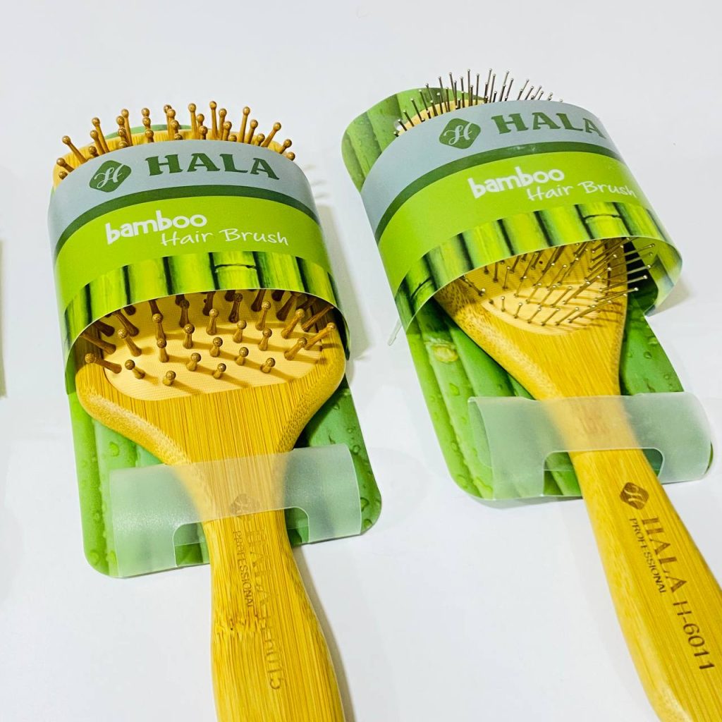 مشط مقبض خشبي لتصفيف الشعر من حلا ، خشبي كامل / اسود بلاستيك / اسنان حديد