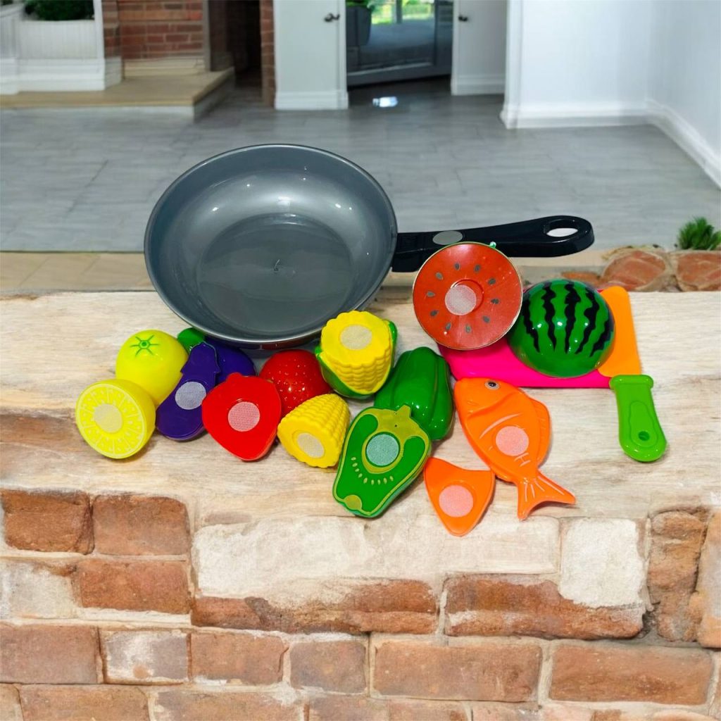 لعبة مطبخ تقطيع الفواكه و الخضروات مع طاجين ,القابلة لأعادة اللصق , 9 قطع