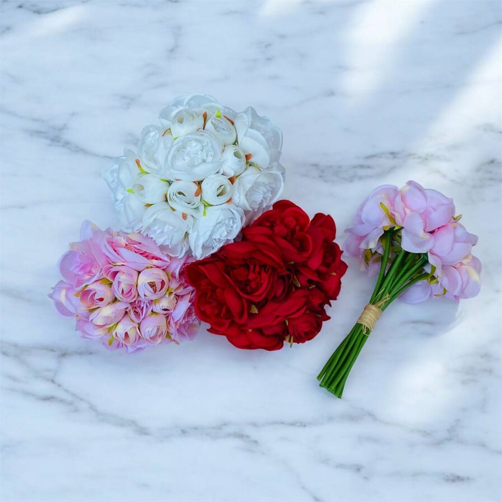 مجموعة باقة ورد صناعي مشكل 14 وردة للهدايا والمناسبات 3 الوان