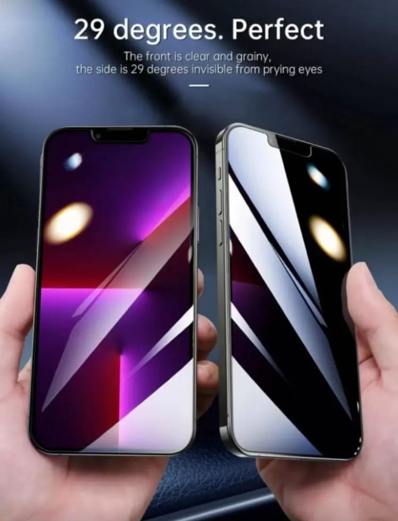 3 قطع من واقي الشاشة الكامل من الزجاج المقسي لحماية الخصوصية مع حافة سوداء وطباعة حرارية مضادة لتجسس مقاوم للماء وضد الصدمات وتخدش وضد البصمات WFHM77