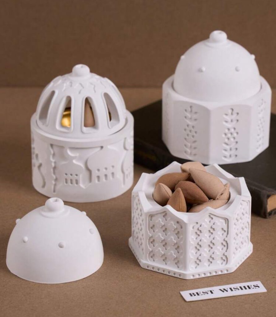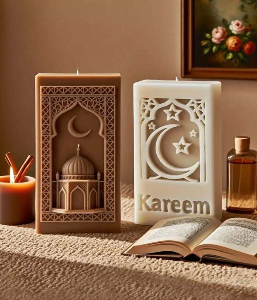 قوالب سيلكون 2*1 مبخرة +علبة بنقش اسلامي وجامع لصب الجبس WFHM77