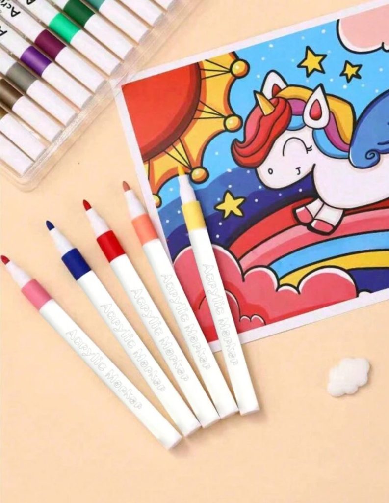 30.00 د.لالوان اكريليك لرسم وتلوين اعمال الفنية اقلام تلوين بالماء مناسب لاعمال فن الكونكريت وزغرفة علي الشمع والرسم والبداع علي الاغلب الاسطح بما فيها الحجر والزجاج والخشب والخزف والاقمشة بدون رائحة وقابلة للغسيل