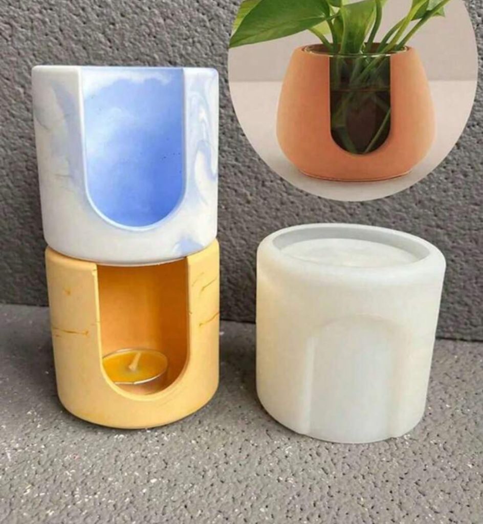 Sold By: Lavera Candles2*1 قالب سيلكون مبخرة + علبة بشكلين مربع ودائري ،جبس واعمال الديكور WFHM77