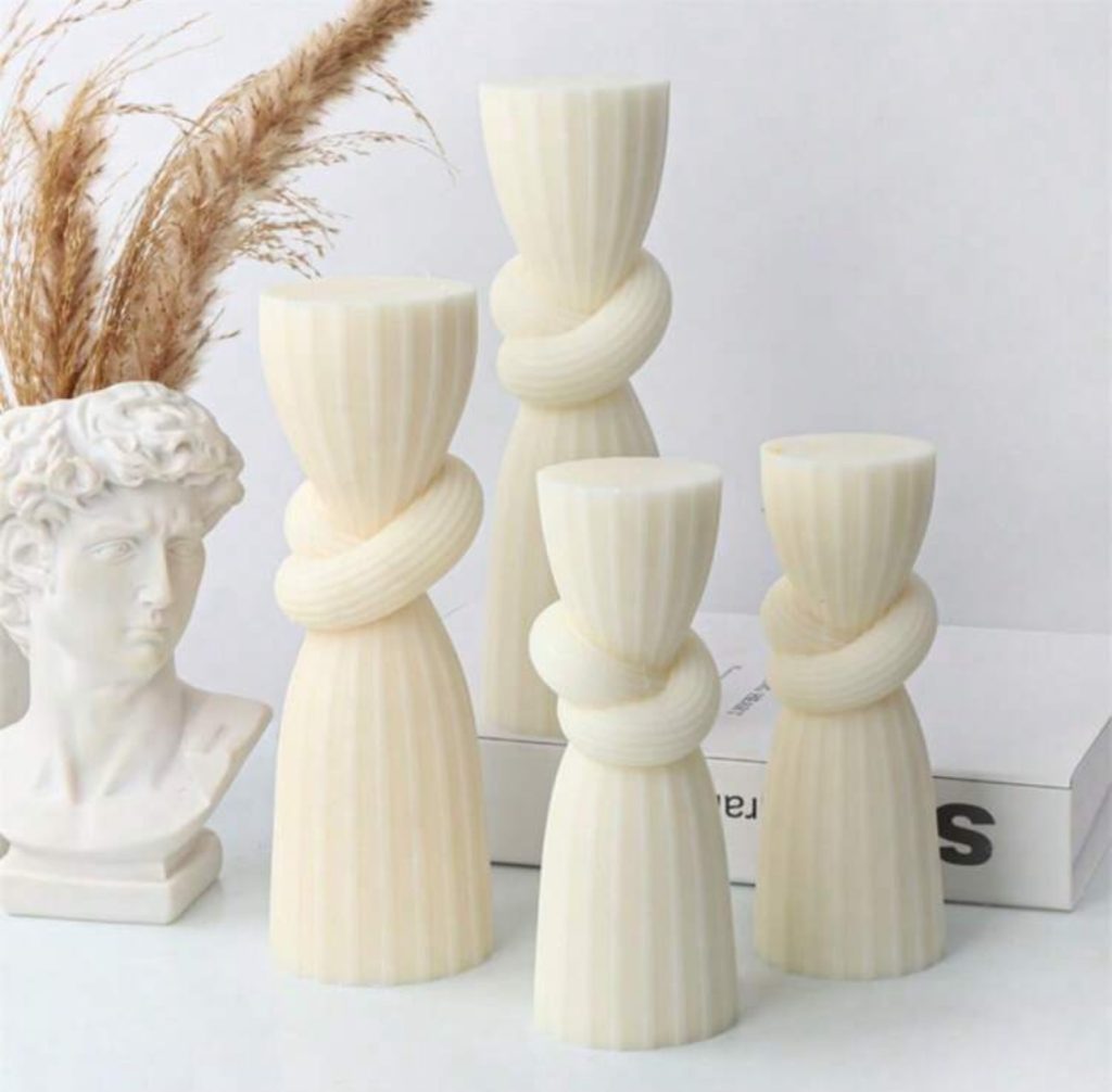 Sold By: Lavera Candlesقالب سيلكون بتصميم انيق بشكل اعمدة مخططة بعقدة ديكور شمع وجبس WFHM77