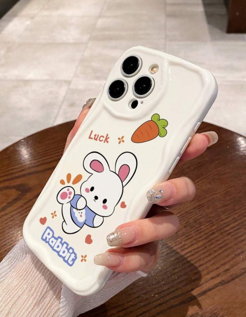 Sold By: Lavera Candlesكفر ايفون طباعة ارنب كرتوني وجزر باللون الابيض من مادة TPU الناعمة WFHM77
