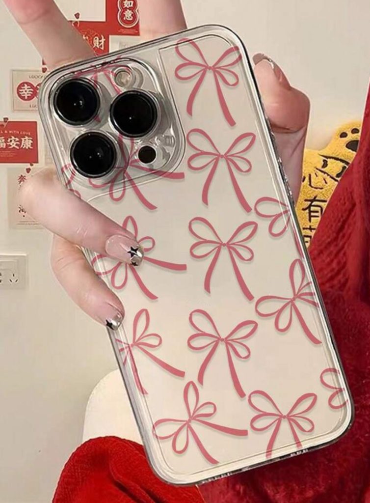 Sold By: Lavera Candlesكفر هاتف ايفون شفاف بنقش فيونكة وردية ترند WFHM77