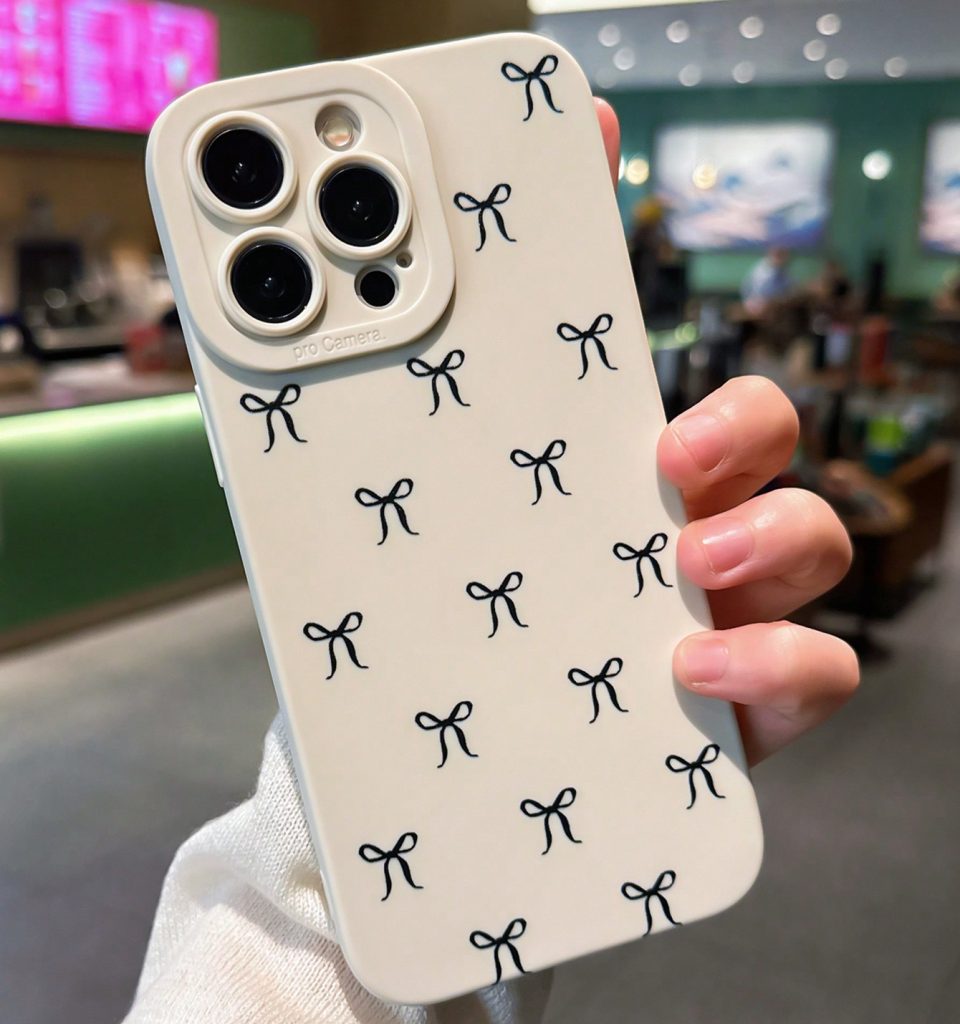 Sold By: Lavera Candlesكفر هاتف ايفون واقي مطاطي ضد الكسر بنقشة فيونكة سوداء ترند الموسم WFHM77