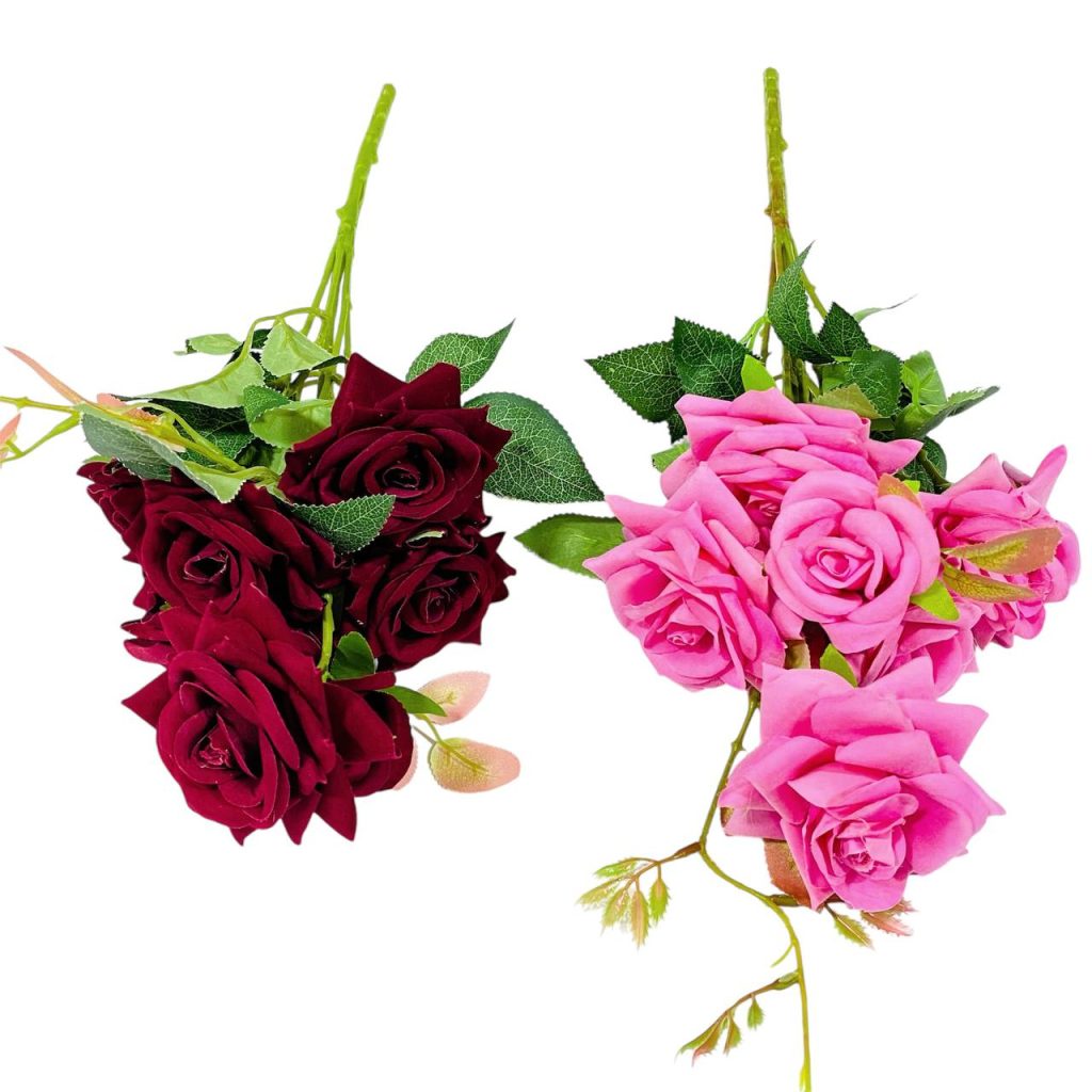 مجموعة ورد جوري صناعي مع اوراق عدد 7 وردات