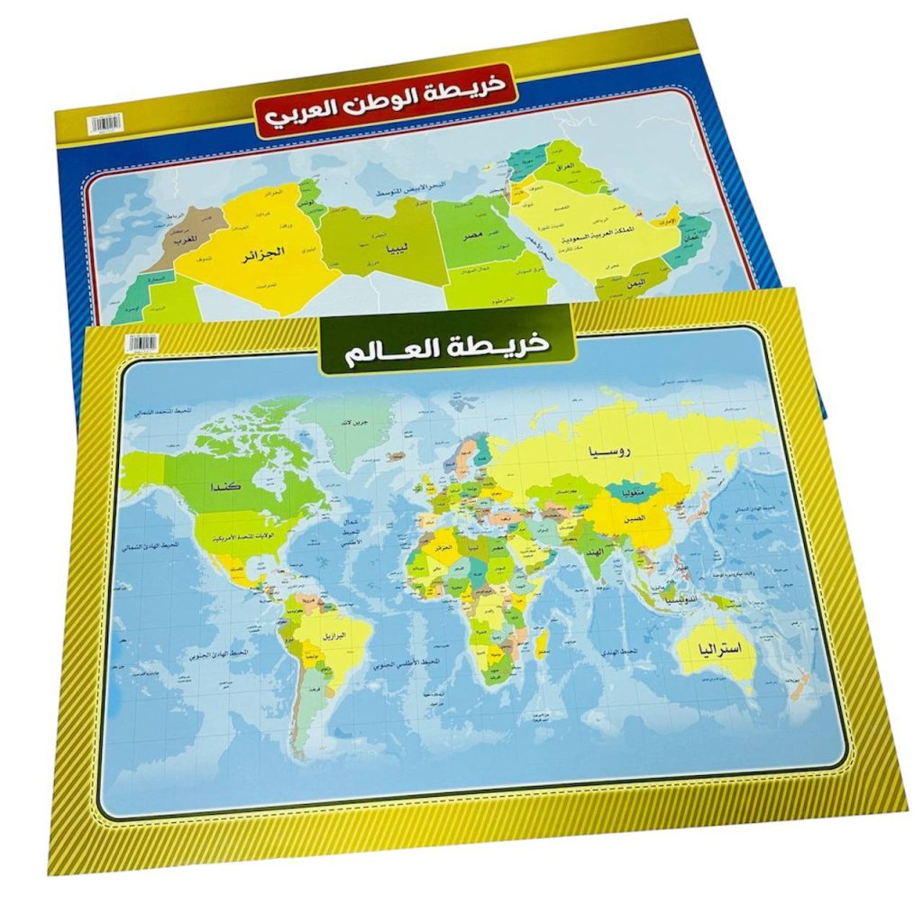 وسيلة خريطة الوطن العربي & العالم مقاس 70*50 سم Fn